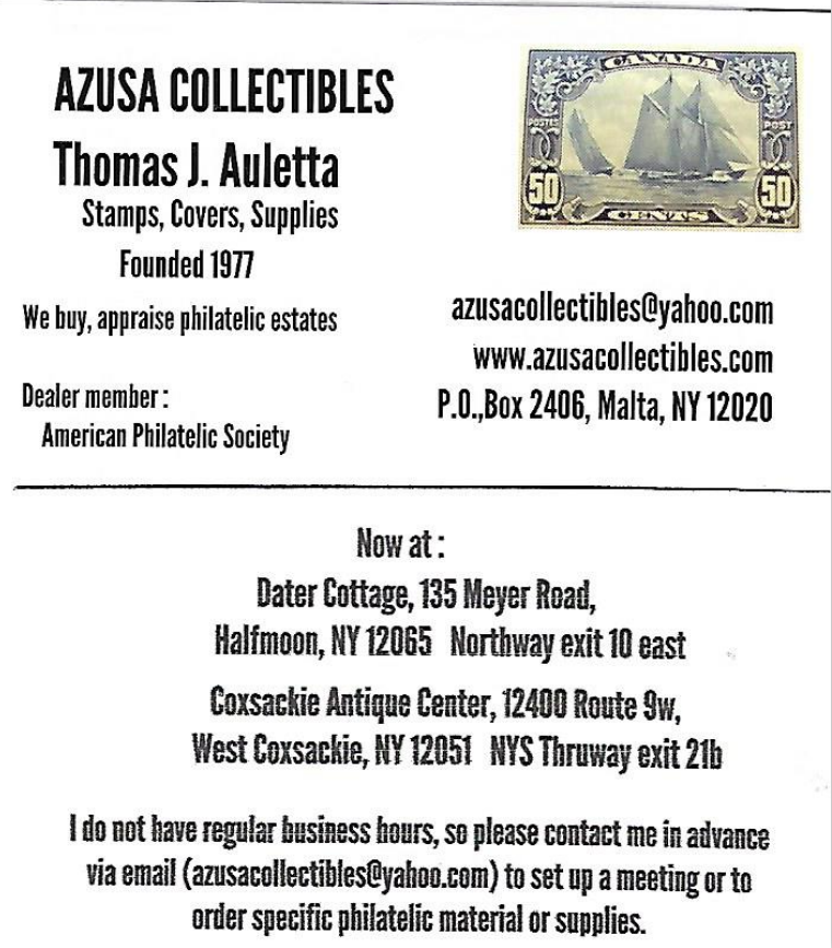 Members' Bourse Will be held in July 2026 and APS and USS circuit books will be available for purchasing items for your collection at every meeting. Also we will sponsor three stamp shows during the year on October 19th 2025, April 19th, 2026, and July 27th, 2026. The shows will be held at the American Legion Hall at 4 Everett Rd Ext, Albany, NY 12205.